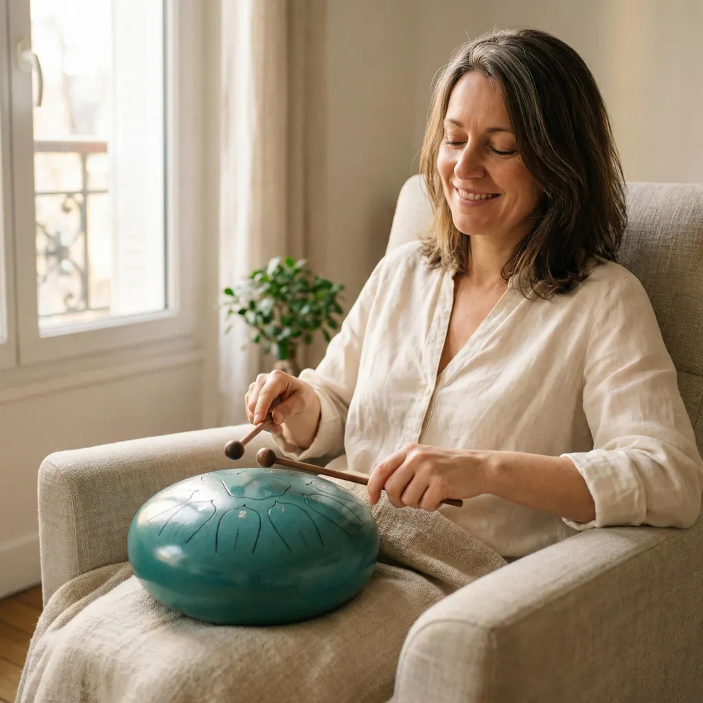 Le Relax Drum passe par le corps d’abord : vous tapez, les vibrations détendent votre corps, et votre esprit se calme naturellement après.